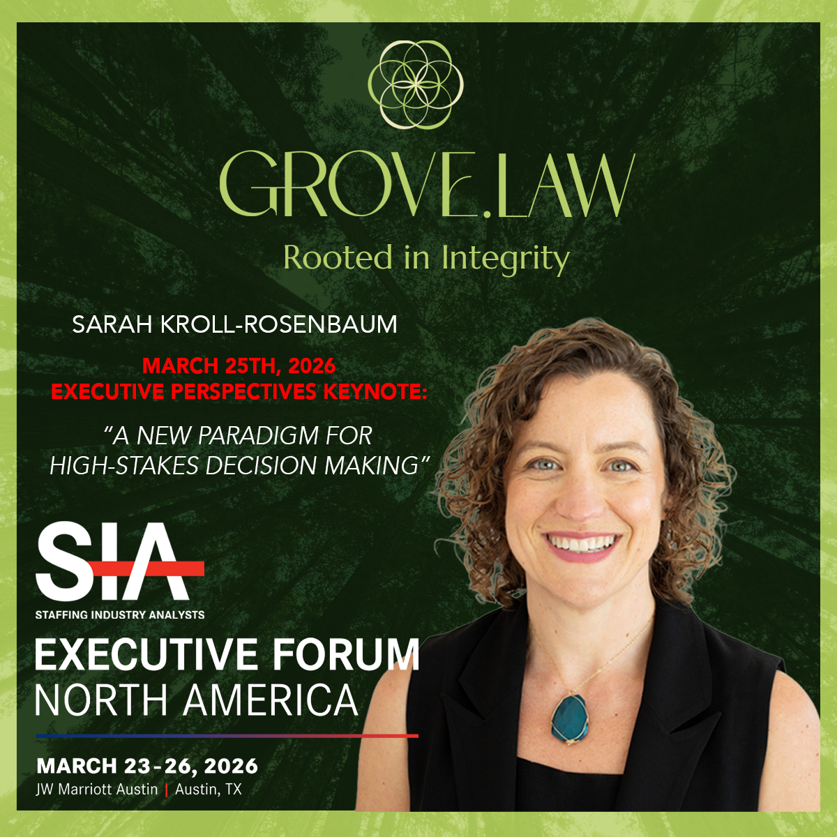 Grove is proud to announce that Founding Partner, Sarah Kroll-Rosenbaum, will give a TED-style keynote presentation at Staffing Industry Analysts' Executive Forum North America, "A New Paradigm for High-Stakes Decision Making."
